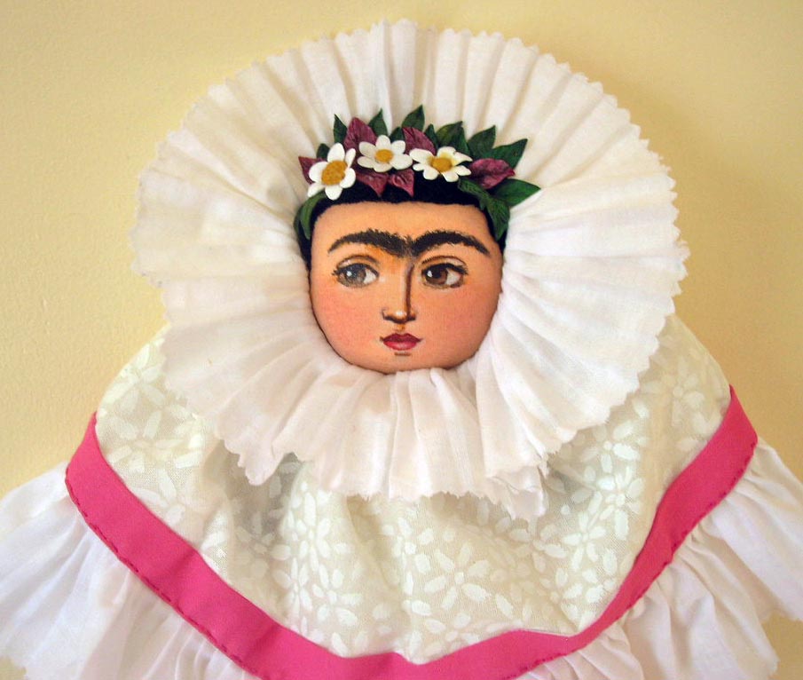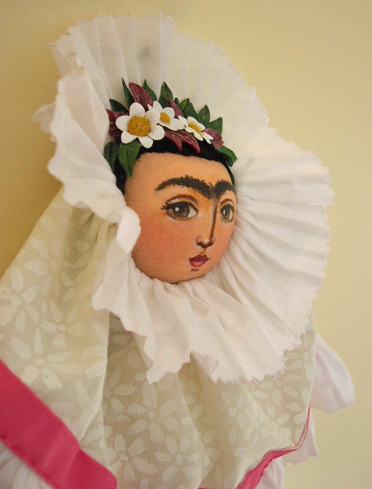 Frida doll ready to go! I omitted Diego Rivera’s portrait in her forehead because I dislike him, and did not want to see his face on any of my dolls.