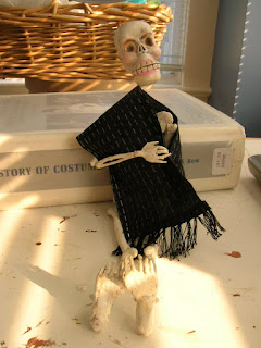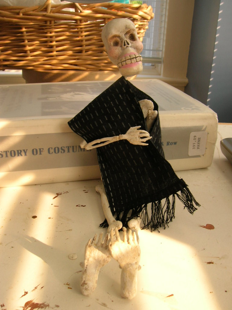 El traje de la Srita. Calavera esta siendo cortado y cosido, mientras tanto ella fue maquillada.